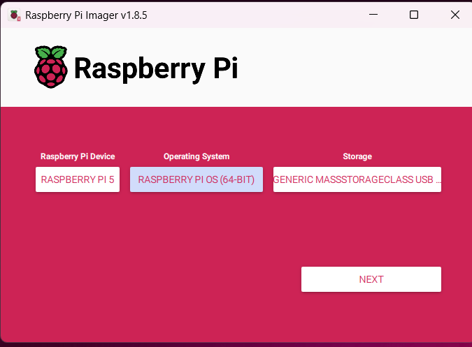 1. Choose *Raspberry PI 5* as OS and *Raspberry Pi OS with Desktop*
