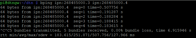 Note: IPNSIG's Bundle board will automatically display every bundle that gets sent to the ipn:268484800.6 endopoint. It can display binary data in hex format, strings, JSON and CBOR (JSON and CBOR formats that get formated)